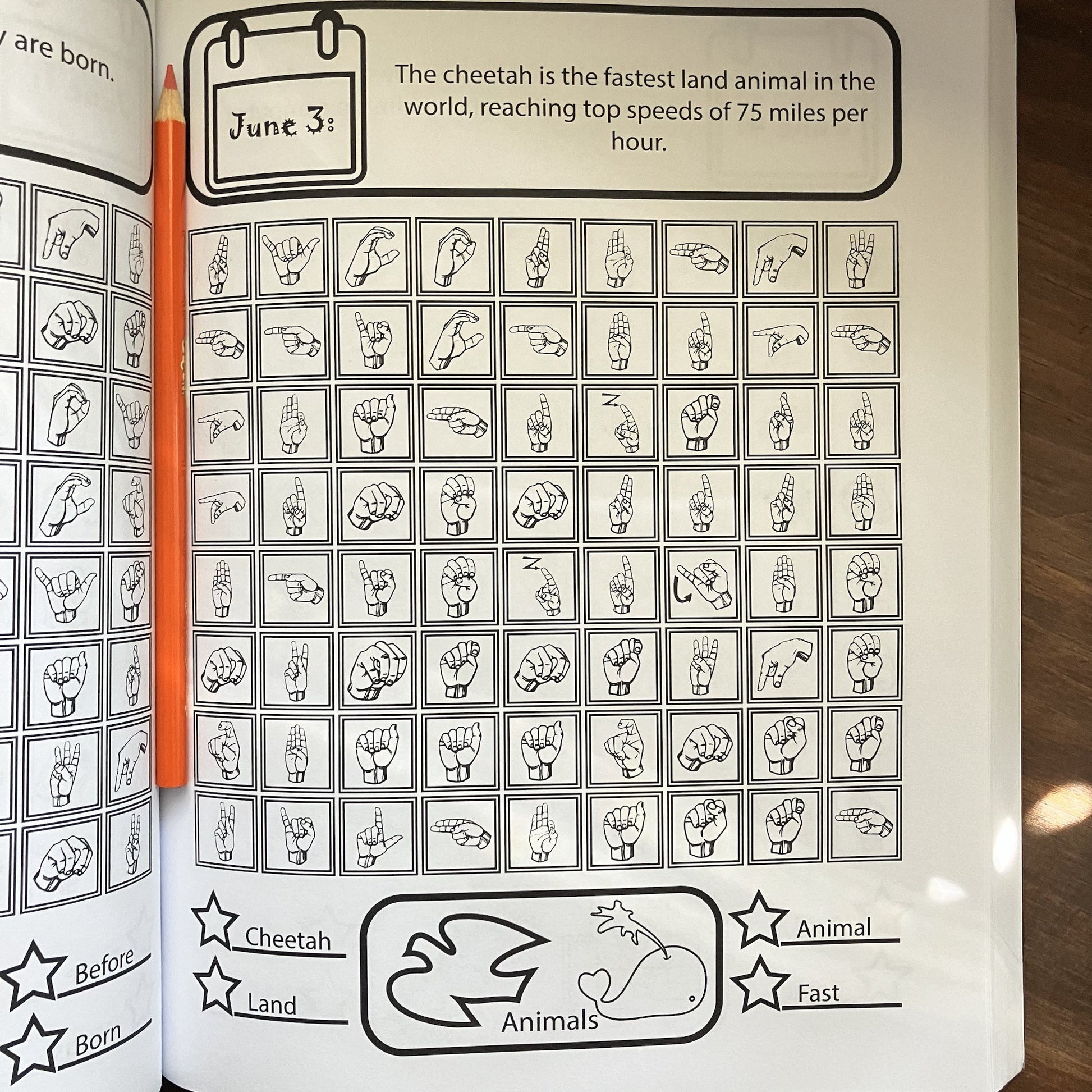 Not only does this book entertains with interesting facts, it helps you recognize and learn the American Sign Language Finger Alphabet. With 9 new words on every page, each puzzle is a more colorful take on the average word search. Not only can students find the words, they can color them too. This reinforces learning each word with a creative twist. For an extra challenge, go online and research if each word has a sign.