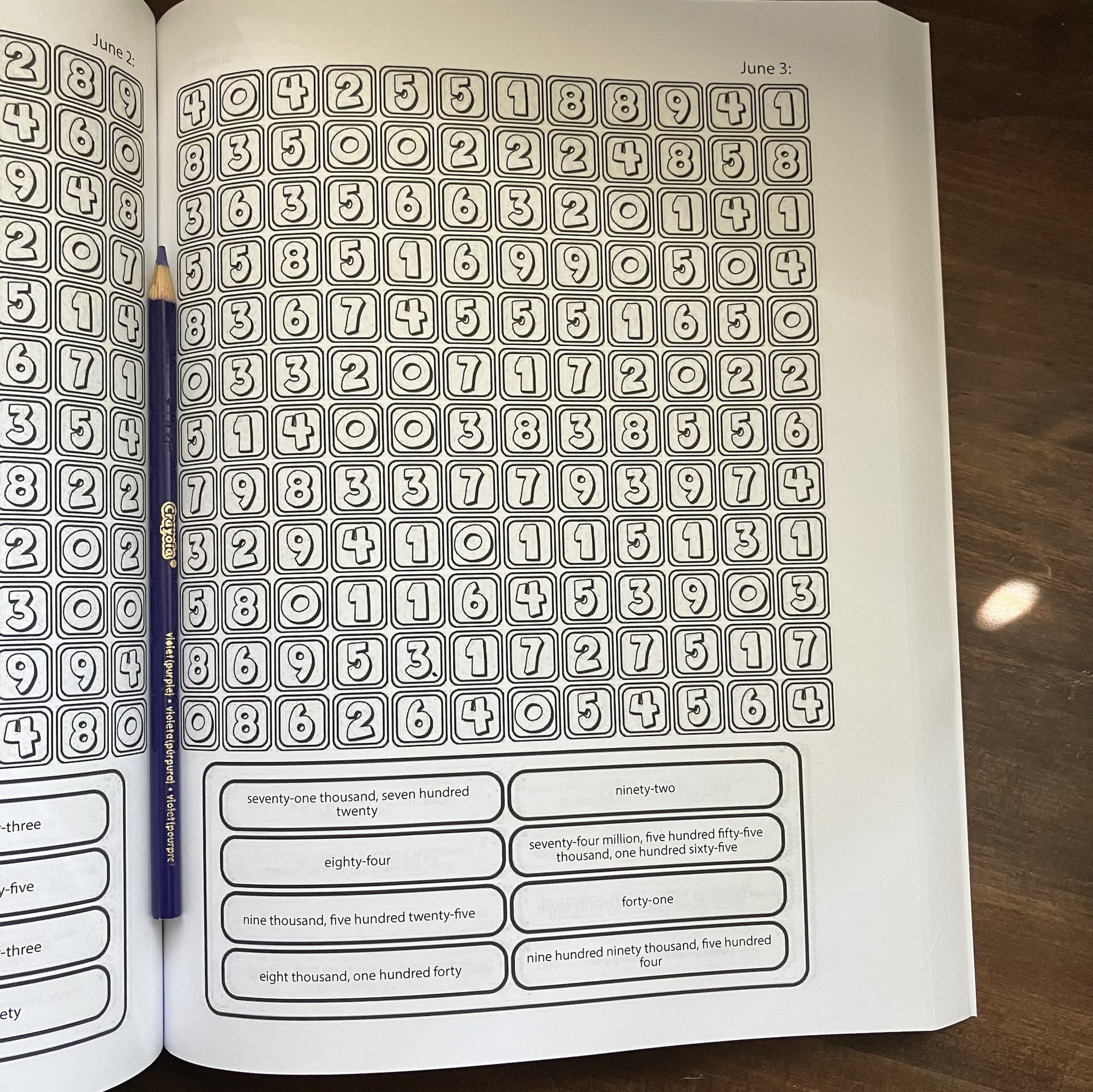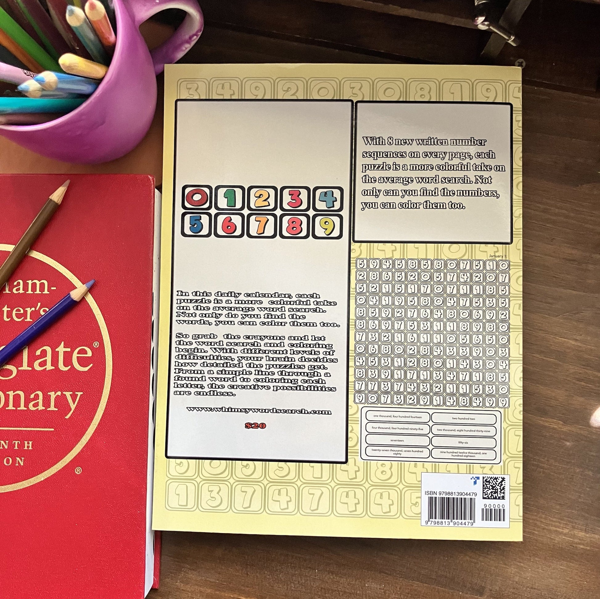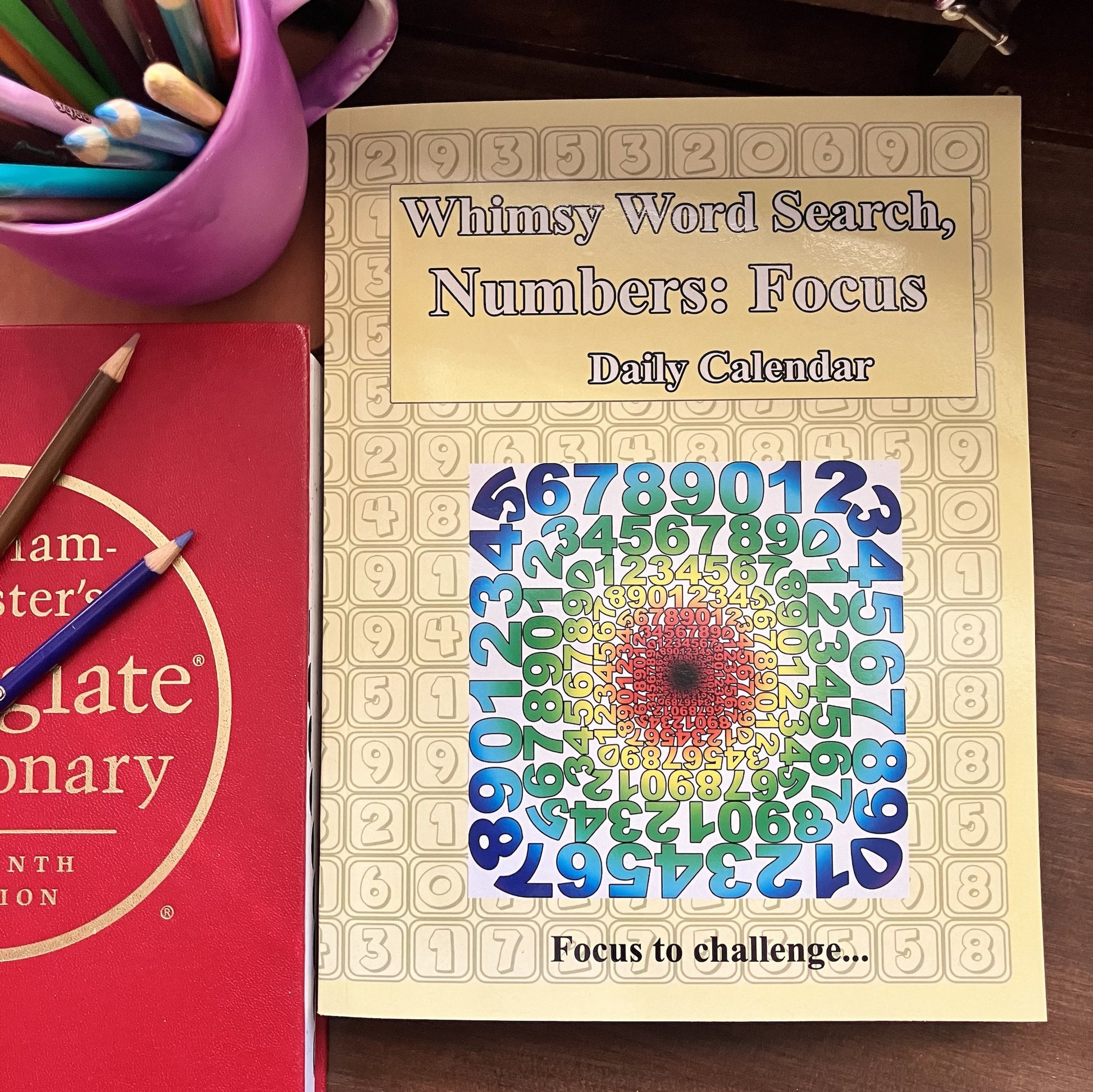 In Whimsy Word Search, Numbers, Focus – Calendar: With 8 new written number sequences on every page, each puzzle is a more colorful take on the average word search. Not only can you find the numbers, you can color them too.