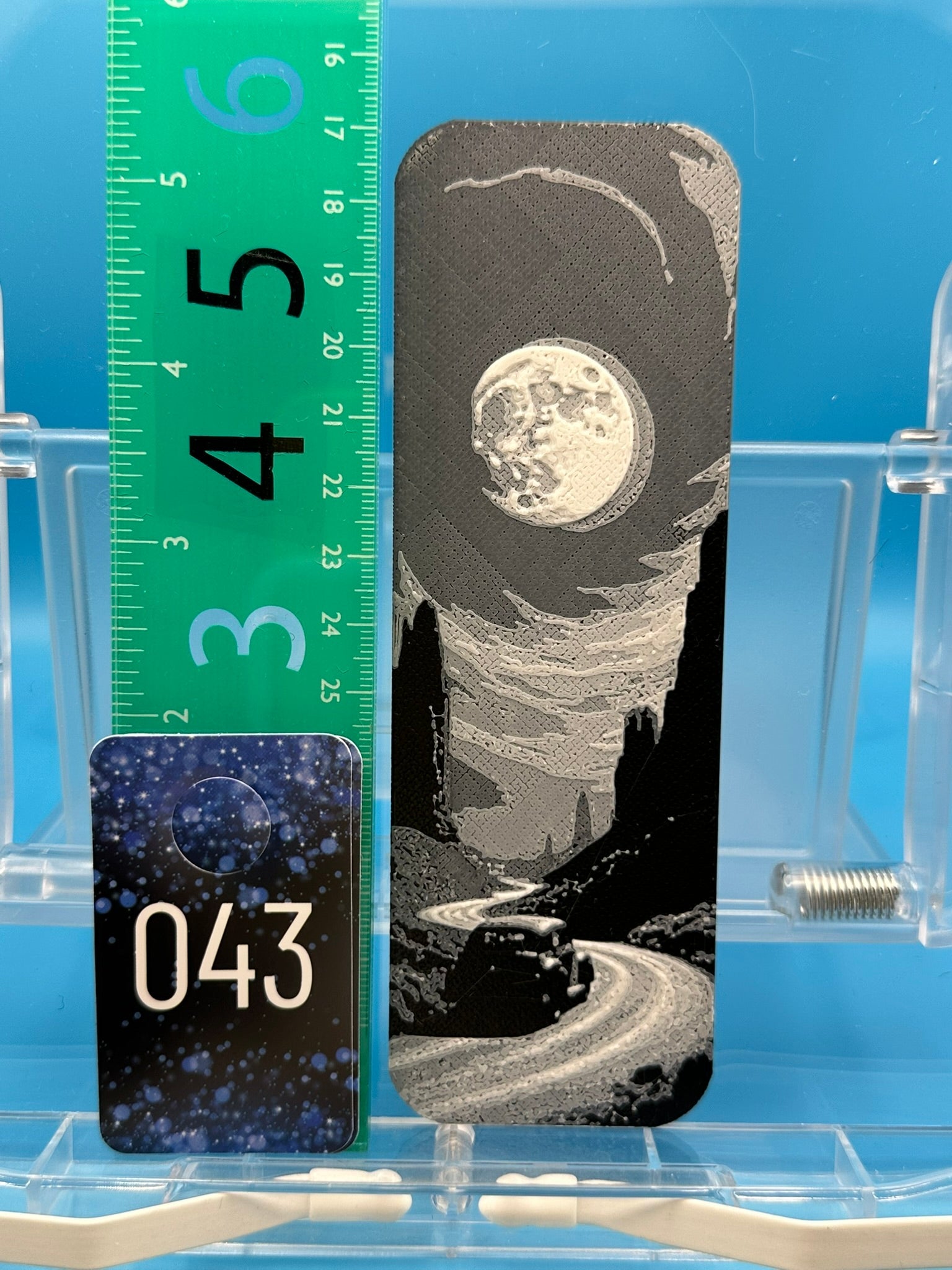 Each bookmark is 3d printed with 15 thin layers of intricate details, ensuring no two are exactly alike. Pictures cannot truly convey its textile goodness.